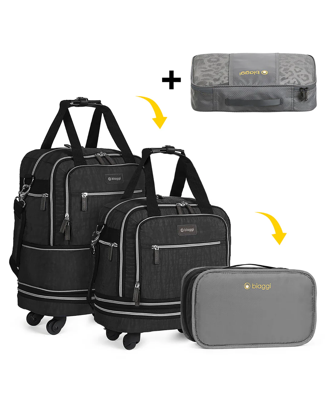กระเป๋าสัมภาระใต้ที่นั่งแบบขยายได้ของเราเป็นกระเป๋าอเนกประสงค์ที่เริ่มต้นจากกระเป๋าใบเล็กที่จัดเก็บง่าย เมื่อกางออกจะกลายเป็นกระเป๋าเดินทางแบบมีล้อ 4 ล้อที่สอดไว้ใต้ที่นั่งบนเครื่องบินด้านหน้าได้อย่างสะดวกสบาย ต้องการพื้นที่เพิ่มใช่ไหม? ไม่มีปัญหา! กระเป๋าสัมภาระใต้ที่นั่งของคุณขยายได้ 5 นิ้วขึ้นไป กลายเป็นกระเป๋าเดินทางขนาดมาตรฐานที่ได้รับการรับรองจาก TSA! มาพร้อมช่องเก็บของลึกพิเศษ ให้คุณเก็บเสื้อผ้าไว้ในช่องเก็บของได้ และยังมีพื้นที่เหลือเฟือสำหรับสัมภาระติดตัวอื่นๆ