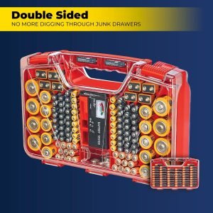 - Find the Right Battery: Incorrect storage drains batteries. Stay organized and be prepared for power outages, new gifts, or any time you need to replace a dead battery. Built-in carrying handle lets you take it anywhere