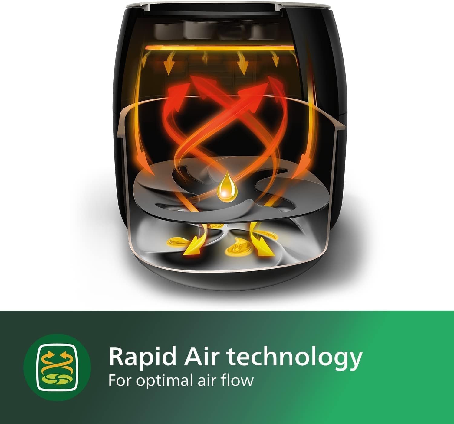 Philips Premium Airfryer เป็นเครื่องทอดไร้น้ำมันเพียงแบรนด์เดียวที่มีเทคโนโลยีกำจัดไขมัน ซึ่งช่วยดึงและแยกไขมันส่วนเกินออกจากอาหารได้มากกว่าเครื่องทอดไร้น้ำมันแบรนด์อื่น ๆ ตอนนี้คุณสามารถทอดอาหารโปรดได้โดยใช้น้ำมันน้อยหรือไม่ใช้น้ำมันเลย และยังสามารถกำจัดไขมันส่วนเกินออกจากอาหารได้ด้วย