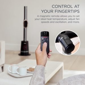 รีโมทอัจฉริยะและแท่นวางแม่เหล็ก: ปรับอุณหภูมิ ความเร็วพัดลม โหมด และการหมุนได้จากรีโมทที่ให้มา ซึ่งสามารถติดเข้ากับตัวเครื่องด้วยแม่เหล็กได้ จึงพร้อมใช้งานเสมอเมื่อคุณต้องการ